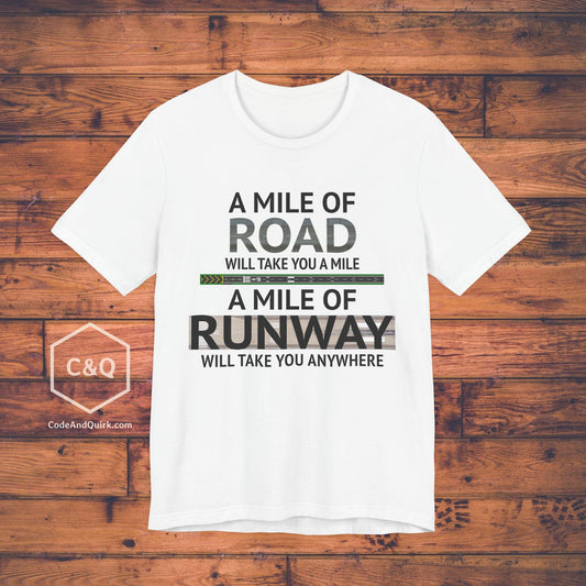 A mile of road takes you a mile, a mile of runway takes you anywhere - pilot's T-Shirt